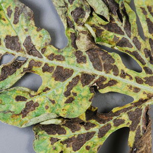 بیماری گیاهی لکه برگی هندوانه یا بلایت آلترناریایی هندوانه علاوه بر این محصول به محصولات دیگری از جمله خیار، طالبی، ملون و کدو نیز آسیب میرساند. این بیماری به برگ بوته خسارت وارد میکند و مستقیماً تاثیری روی میوه هندوانه ندارد.